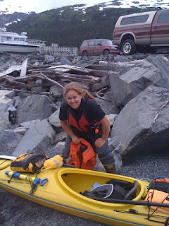 The plan was to grab a charter out of Whittier to Blackstone Bay where we would camp, kayak, drink and tell lies. A few days before our departure Rebecca realized that our odds of grabbing an ideal spot for our large group the day before our country celebrated red, white, and blue wasn't great. Her solution was to have a few of us leave early... paddling the 19 or so miles from Whittier to Lawrence Glacier.
